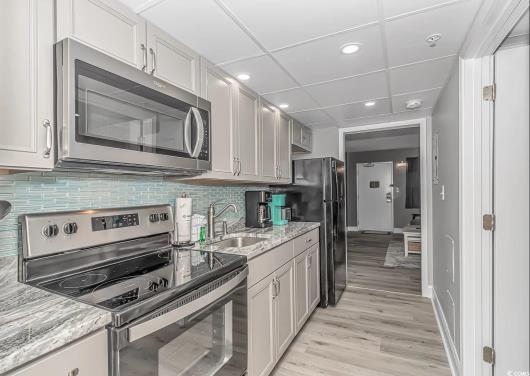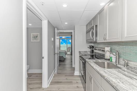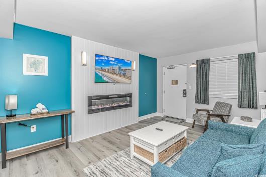 Fully Renovated Oceanfront 1BR at Camelot by the Sea. Experience breathtaking oceanfront views from this exquisitely renovated 1-bedroom condo in the highly sought-after Camelot By the Sea Resort. Designed with attention to detail, this unit features a reimagined layout where the bedroom now faces the ocean—providing unmatched views and a serene coastal ambiance right from your bed. A top-performing short-term rental with a strong income history, this condo boasts luxury vinyl plank flooring throughout, custom modern accent walls with built-in fireplaces in both the bedroom and living room, and all-new furnishings and stylish décor. The kitchen and bathroom showcase granite countertops and other upscale finishes, offering a perfect blend of comfort and sophistication. Centrally located on 20th Avenue North in the heart of Myrtle Beach, you’re just steps from the Boardwalk, SkyWheel, top restaurants, vibrant nightlife, and endless attractions. Camelot offers an array of amenities including indoor/outdoor pools, water features, and direct access parking. Seize the opportunity to own this stunning retreat just in time for peak summer rental season.