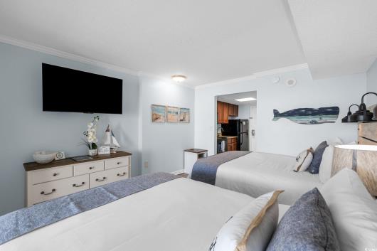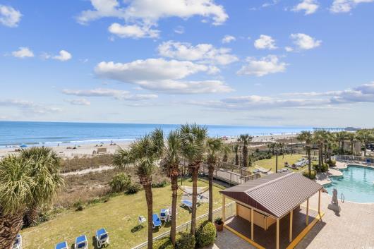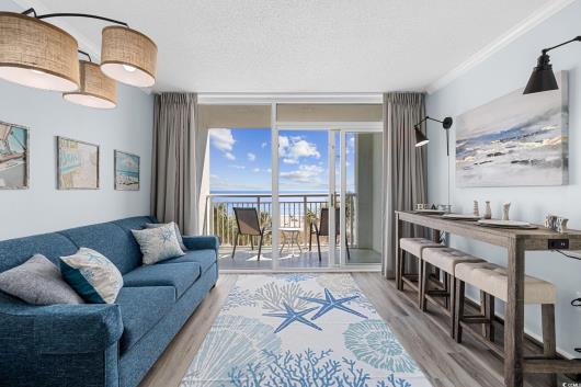 Welcome to Camelot by the Sea, one of the most desirable premium resorts on the sands of Myrtle Beach. Discover the perfect blend of relaxation and investment opportunity with this gorgeous 6 person oceanfront studio, offering breathtaking views of the pristine Myrtle Beach. Meticulously maintained, this unit shines with a near five-star rating on Airbnb, making it an ideal choice for savvy investors or those seeking a serene getaway. Step outside and immerse yourself in resort-style living, complete with a lazy river, indoor/outdoor pool, kiddie pool and rejuvenating hot tub. Unwind at the tiki bar or take a leisurely stroll to the nearby boardwalk, where you can enjoy the iconic Sky Wheel and a vibrant selection of bars and restaurants. This prime location ensures you'll have everything you need right at your fingertips. Whether you're lounging on the beach, enjoying the amenities, or exploring local attractions, this oceanfront studio condo promises a lifestyle of luxury and leisure. Don't miss the chance to own a piece of paradise