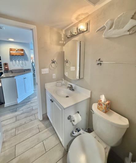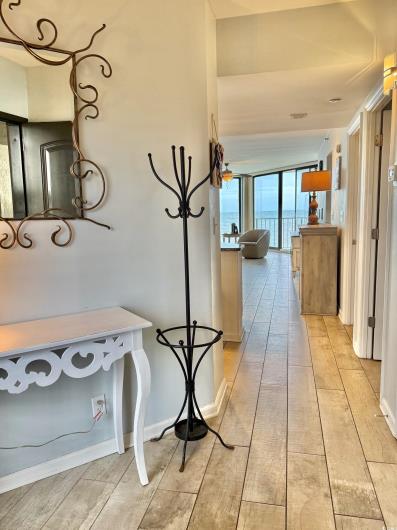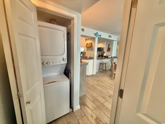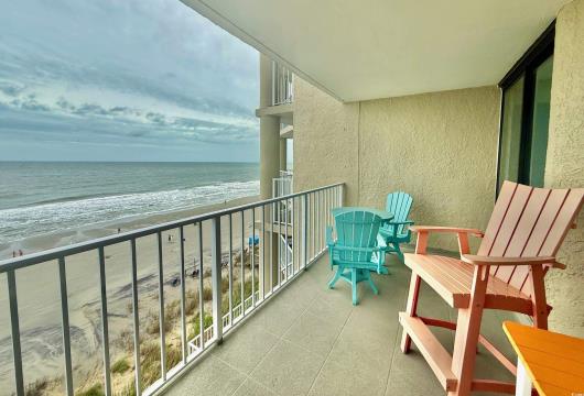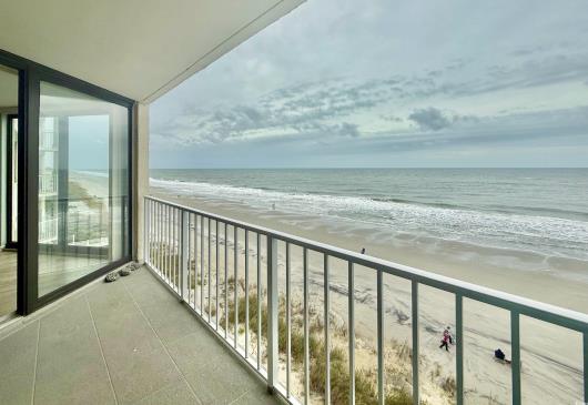 Beautifully renovated direct oceanfront two-bedroom, two-bathroom condo in One Ocean Place in Garden City. Enjoy stunning panoramic ocean views the moment you walk in. Open floor plan with V-shaped glass wall, wood-look tile throughout, smooth ceilings and updated kitchen with white shaker cabinets, granite counters, island, and stainless steel appliances. The living room and primary bedroom have remote controlled electric blinds. The primary oceanfront suite has a balcony access, a walk-in tiled shower, and ocean views from the bathroom. The second bedroom can hold two double beds and has access to the hall bath with a large tiled walk-in shower. One Ocean Place offers two elevated pools, hot tubs, an owner's lounge, and a fitness center. Well-managed building in the desirable "family beach" area - perfect for primary residence, second home, or investment.