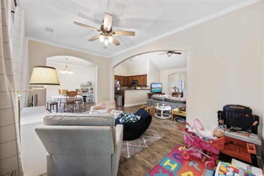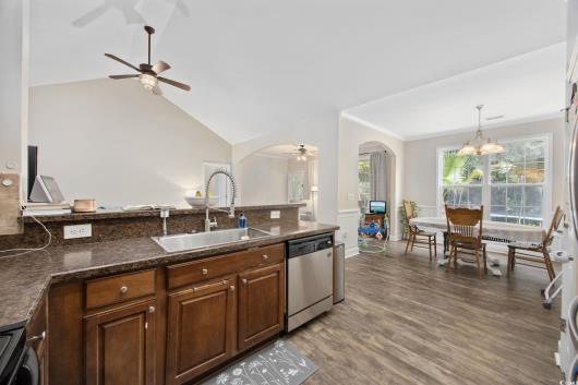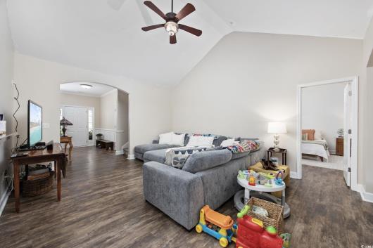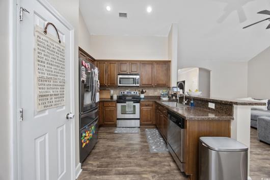 Welcome to 5149 Morning Frost Place, a beautifully maintained 4-bedroom, 2-bathroom single-family home nestled in the highly sought-after community of The Farm at Carolina Forest. Spanning 2,100 square feet, this residence offers a spacious and open floor plan, perfect for both entertaining and everyday living. The expansive living and dining areas flow seamlessly into an enclosed sunroom, providing ample space for relaxation and gatherings. Equipped with stainless steel appliances, a generous pantry, and abundant cabinet storage, the kitchen is a chef’s delight. The owners suite is thoughtfully positioned on the opposite side of the home from the additional bedrooms, ensuring privacy and tranquility. Residents of The Farm enjoy access to a clubhouse, fitness center, swimming pool, and walking trails, enhancing the coastal lifestyle experience. Situated on a 0.16-acre lot, this home combines comfort and convenience in a prime Myrtle Beach location. Its proximity to top-rated schools, shopping centers, and the beach makes it an ideal choice for families and retirees alike. Schedule your tour today!!