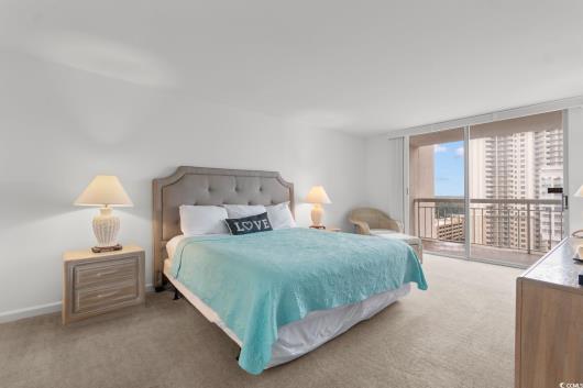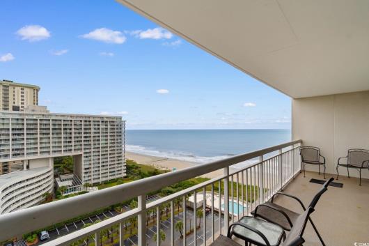 Discover the expansive comfort of this two-bedroom, two-full-bathroom residence, spanning about 1,500 total sq. ft. The thoughtful design offers an extraordinary feature: three private balconies, one accessible from every room, providing residents with multiple spaces to enjoy the coastal air. Both bedrooms are immense. The versatile guest bedroom offers rare capacity, easily fitting two queen-size beds. The master en-suite has been tastefully designed, featuring a luxurious walk-in shower with tile surround, tile flooring, and elegant granite countertops. Step onto the main balcony to take in stunning, wide views of the ocean. Perfectly situated to capture the best of coastal living, you'll enjoy glorious early morning sunrises and natural shading in the warmer afternoons. This condo is set within Kingston Plantation, a renowned 145-acre master-planned community in the heart of Myrtle Beach. This exclusive location pairs a pristine one-half mile of private beach with a beautifully preserved setting, including 12 acres of freshwater lakes and mature, manicured grounds. Residents enjoy access to an incredible array of world-class amenities: a magnificent Spa and Fitness Center, four clay and hard surface tennis courts, four pickleball courts, twelve sparkling pools, badminton, croquet, and beach volleyball. This is resort-style living at its finest! Your private oasis awaits, so schedule your showing today!