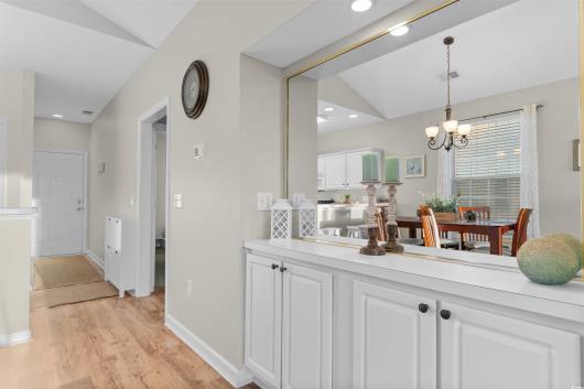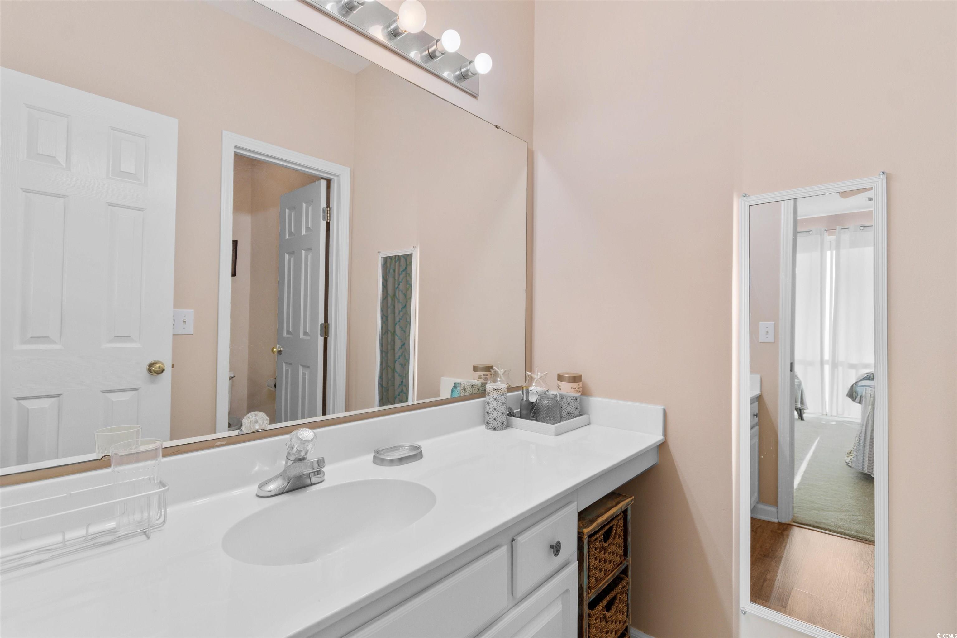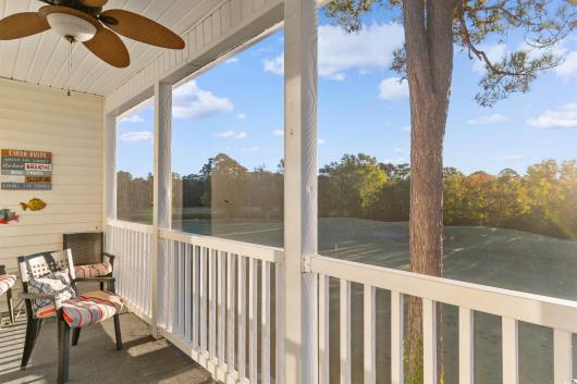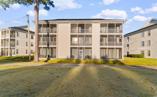 Don’t miss this beautifully maintained, furnished, 2 bedroom, 2 bath top-floor, end-unit condo in the highly desirable River Oaks community! Freshly painted throughout, this home offers a bright and open living space with vaulted ceilings that enhance the airy, coastal feel. The kitchen overlooks the living room, creating a seamless flow that’s perfect for entertaining or relaxing while enjoying the picturesque golf course views. The primary suite features an en suite bathroom complete with an extended vanity and tub/shower combo, while the second bedroom is spacious enough to comfortably accommodate two beds—ideal for guests or family visits. This condo has been beautifully maintained and is move-in ready. Enjoy the convenience of onsite amenities, including a community pool, perfect for soaking up the Myrtle Beach sunshine. Located just minutes from Carolina Forest and Highway 501, you’ll have easy access to top-rated restaurants, shopping, and world-class golf courses, like World Tour- all while being 4 miles from the BEACH! Whether you’re seeking a primary residence, vacation retreat, or investment property, this River Oaks gem offers the perfect combination of comfort, location, and lifestyle.